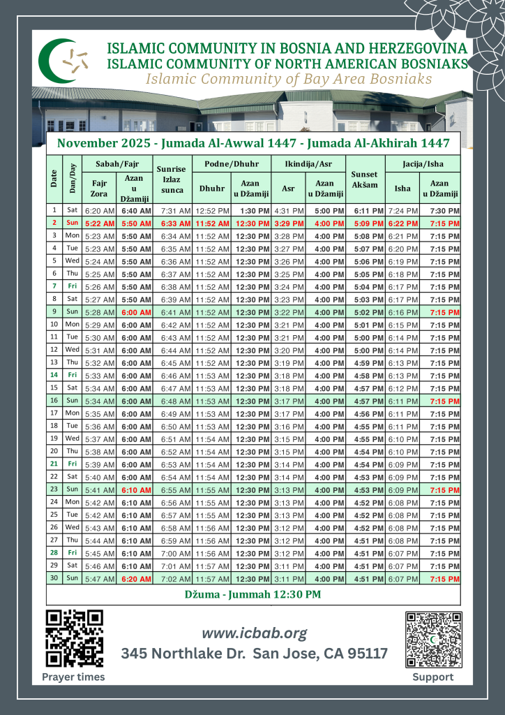Smatramo da je neophodno ostaviti pisani trag našim budućim generacijama kao svojevrsno kulturno, historijsko pa i vjersko naslijeđe te da u budućnosti bude korisna informacija za izradu monografije ICBAB džemat San Jose koji će svjedočiti o vakufu, trudu i željama očeva, majki, djedova i naših nana.